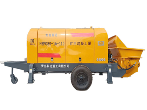 科达HBMG80型矿用混凝土输送泵最大理论排量80m³/h,主电机功率110KW,最大理论输送距离水平800m/垂直150m,允许最大骨料粒径40mm,拥有煤安安全标志证书。